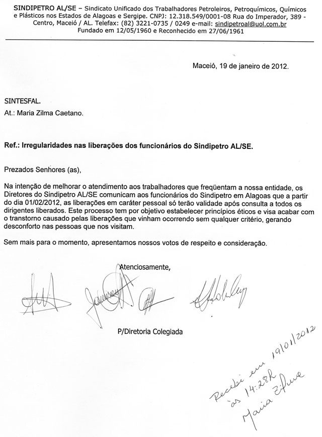 Irregularidades nas liberações dos funcionários do Sindipetro Al/SE