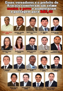 Esses vereadores e o prefeito de Aracaju cometeram um crime contra o povo e aumentaram a passagem para R$ 2,45
