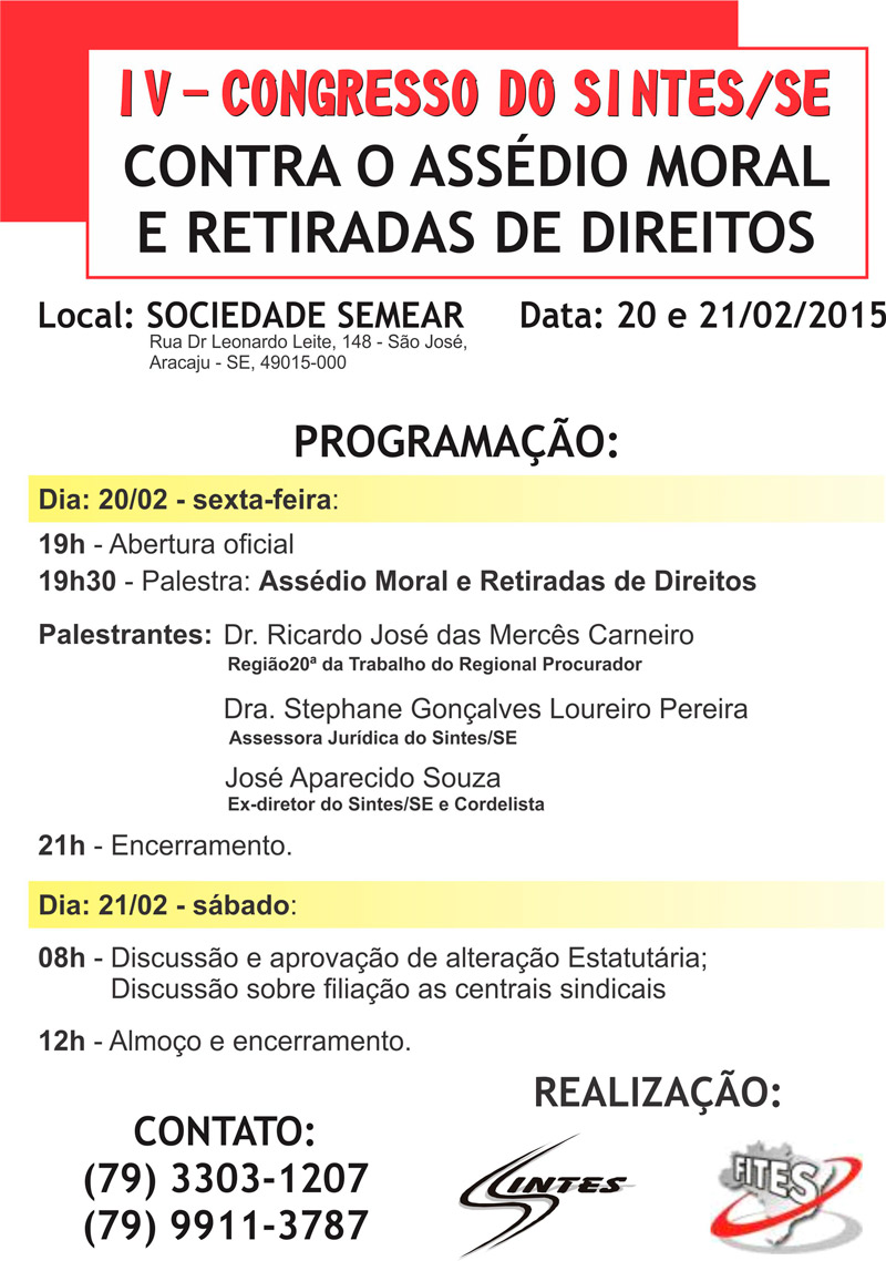 IV - CONGRESSO DO SINTES/SE - CONTRA O ASSÉDIO MORAL E RETIRADAS DE DIREITOS