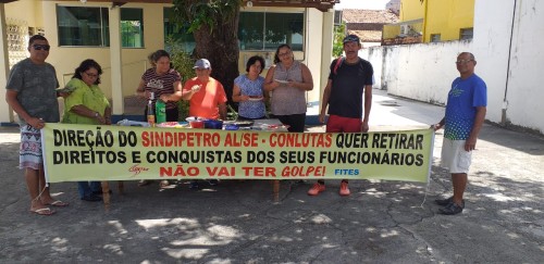 Sexta-feira, dia 13/09, os funcionários do Sindipetro AL/SE de Sergipe pararam as atividades por duas horas para protestar contra o descumprimento do acordo coletivo de trabalho durante um almoço organizado pelos funcionários: A farofada com carne do sol da luta. A palavra de ordem é Cumprimento do Acordo Coletivo já! Nenhum direito a menos.