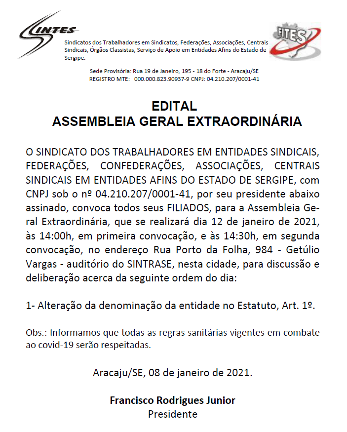 EDITAL - ASSEMBLEIA GERAL EXTRAORDINÁRIA - 12/01/2021