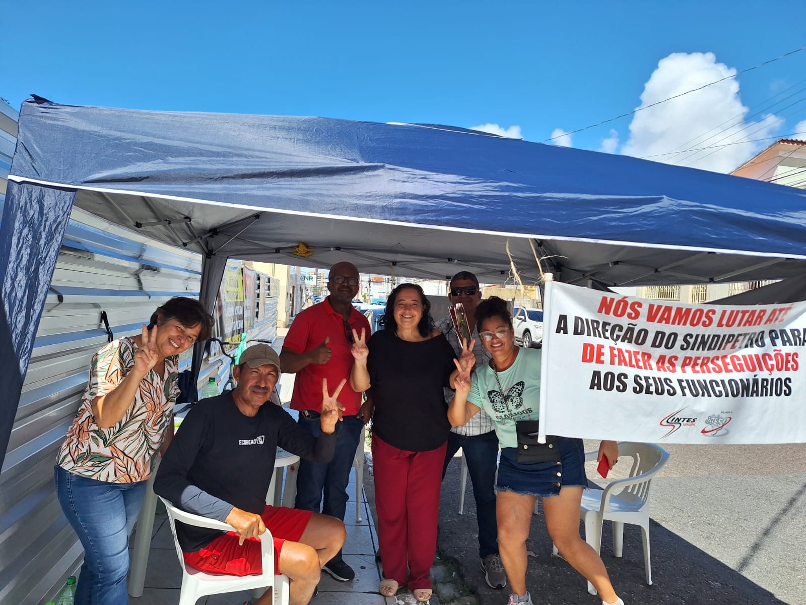 Desde o início da mobilização, os petroleiros se apoiaram atos, abaixo-assinados e campanhas nas redes sociais para denunciar as demissões políticas de Cacau, dirigente do SINTES/SE, e Alberto Calazans, presidente do SINTES/SE, e as advertências ilegais aplicadas à Paula e Norclécia.