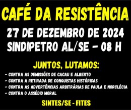Em mais um ato de resistência, os empregados do Sindipetro AL/SE, bravos guerreiros que enfrentam mais de 274 dias de luta pela preservação do emprego e pela manutenção de seus direitos, marcaram presença nas ruas de Aracaju. Ao lado do movimento sindical, estudantil e social, manifestaram-se com um sonoro "não" à anistia para os golpistas, posicionando-se firmemente contra aqueles oportunistas que tentaramLeia Mais...